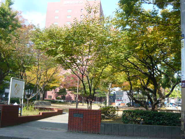 博多駅から祇園駅へ行く途中にある、オフィス街の中の公園です。私が訪れたときは水道工事で半分ほど閉鎖されていました。それでも、充分に広い公園だと思います。