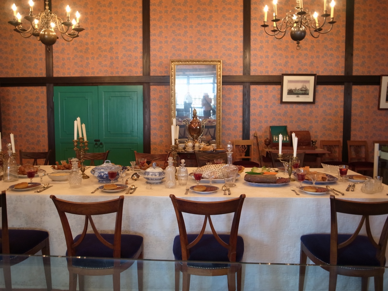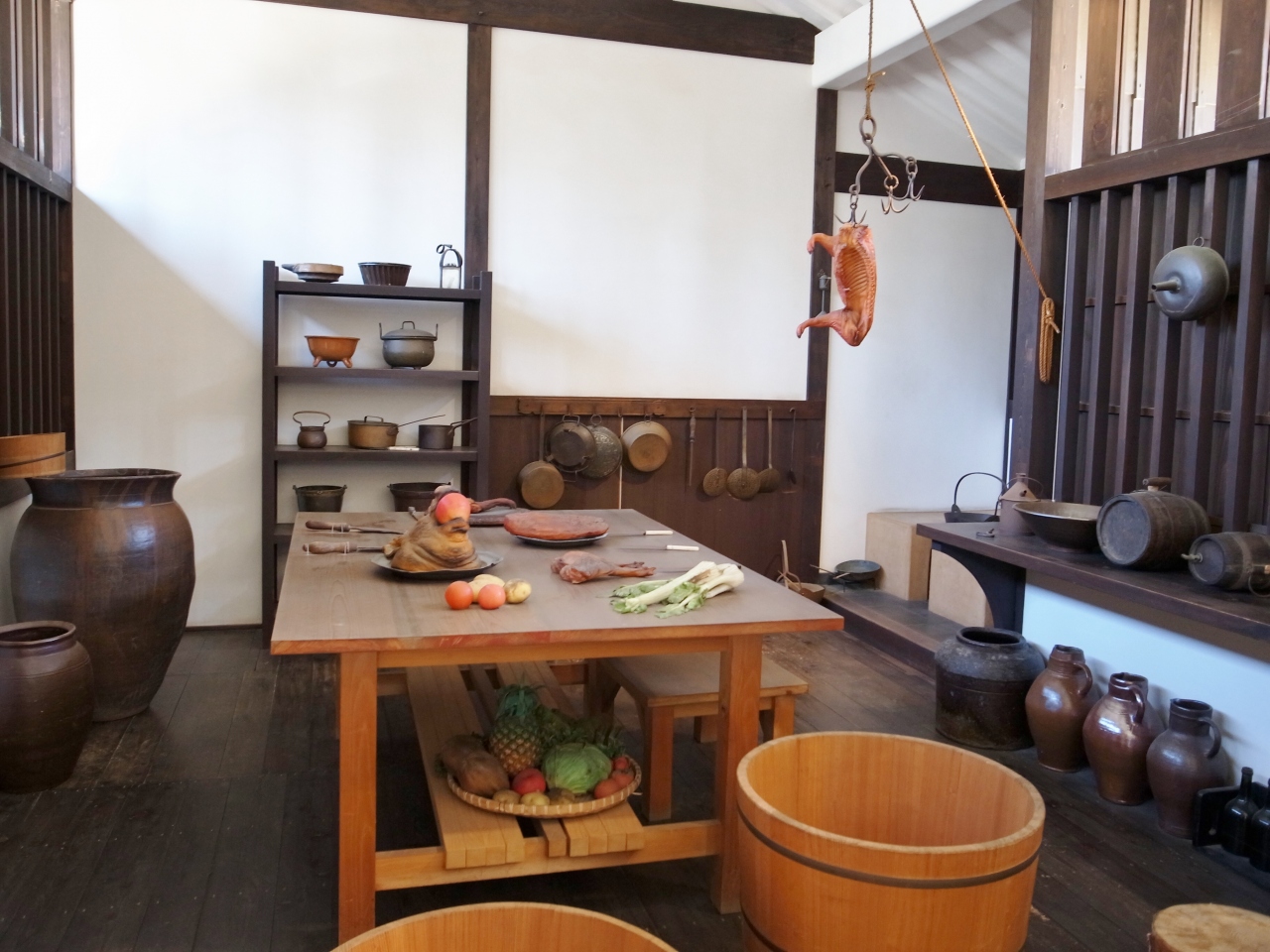 鎖国下の日本で唯一西洋への窓口であった出島のオランダ商館が再現されています。商館長や船長、商館員の居住区や倉庫などが扇形の敷地の中に復元され、畳の部屋にベッドや椅子、テーブルの生活をしていた様子やどんな料理を食べていたかなど、当時の様子が楽しく学べました。