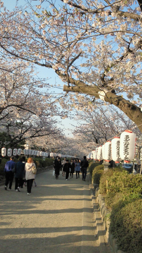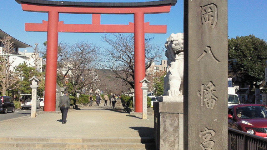 鎌倉駅東口を出て、突き当りの若宮大路を左に曲がると、通りの中央に鳥居があり、そこから八幡宮まで、通りの中央に道が作られています。これが、段葛と呼ばれる鶴岡八幡宮の参道です。小町通は観光客でごった返すので、八幡宮に参拝するときはいつもこの参道を通ることにしています。段葛の両側には桜 が植えられ、春は段葛全体がみごとな桜のトンネルとなり、鎌倉を代表する桜の名所となっています。4月上旬には、提灯がともされ、夜桜見物も楽しめます。