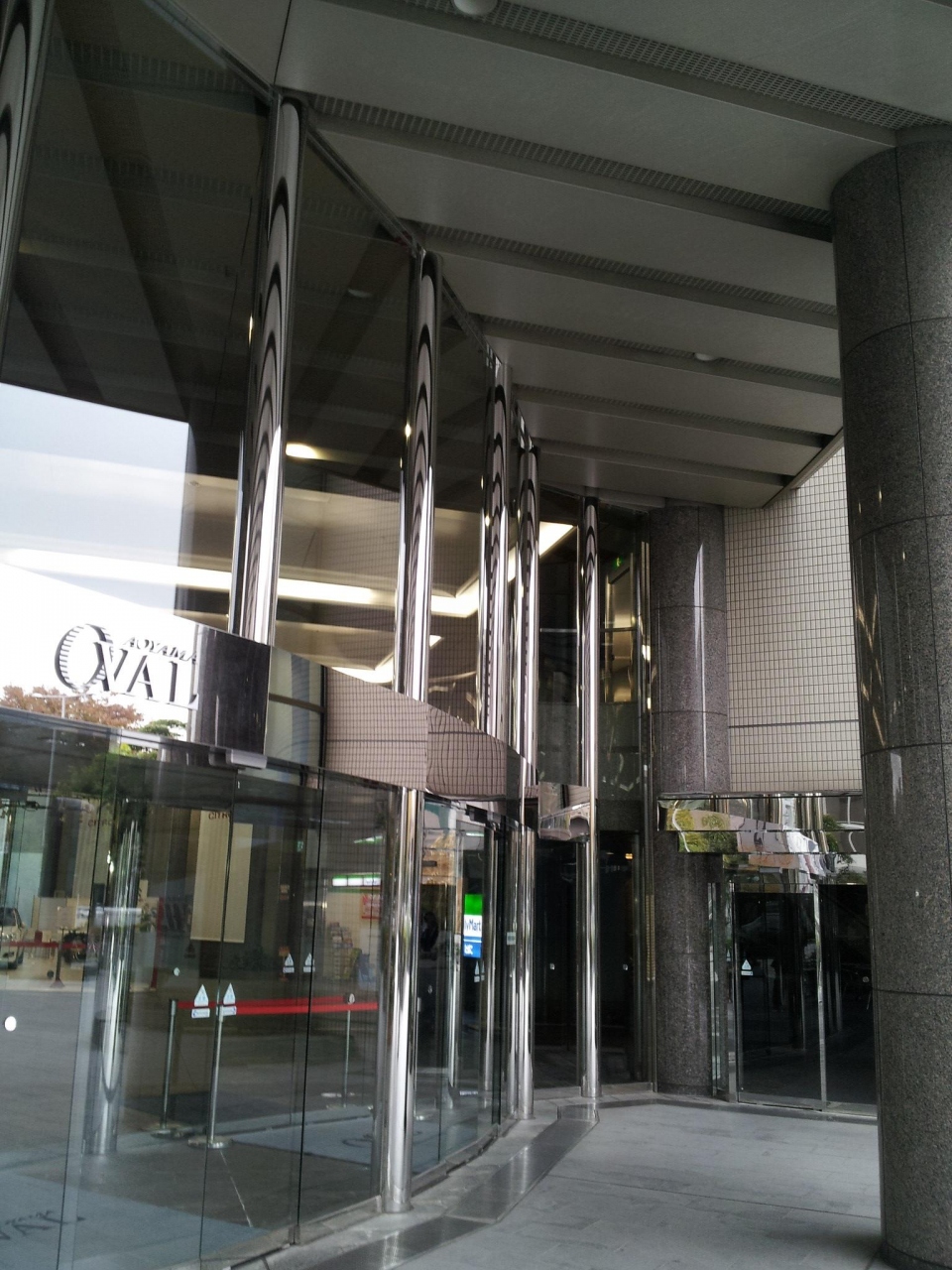 青山学院大学と青山通りを挟んで立つ楕円形のシンボリックな16階建ての建物です。