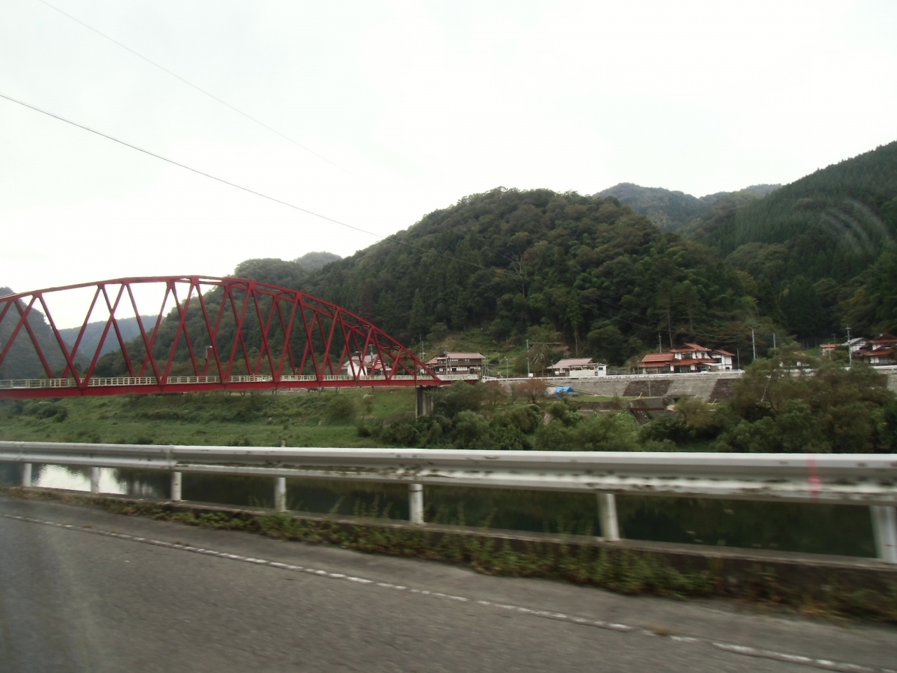 2012年9月から12月にかけて行われている社会実験の増便バスは、この付近の区間は三江線の対岸である江の川の右岸・広島県側を走ります。バス停は駅の近くにかかる三国橋のたもとに設けられていました。