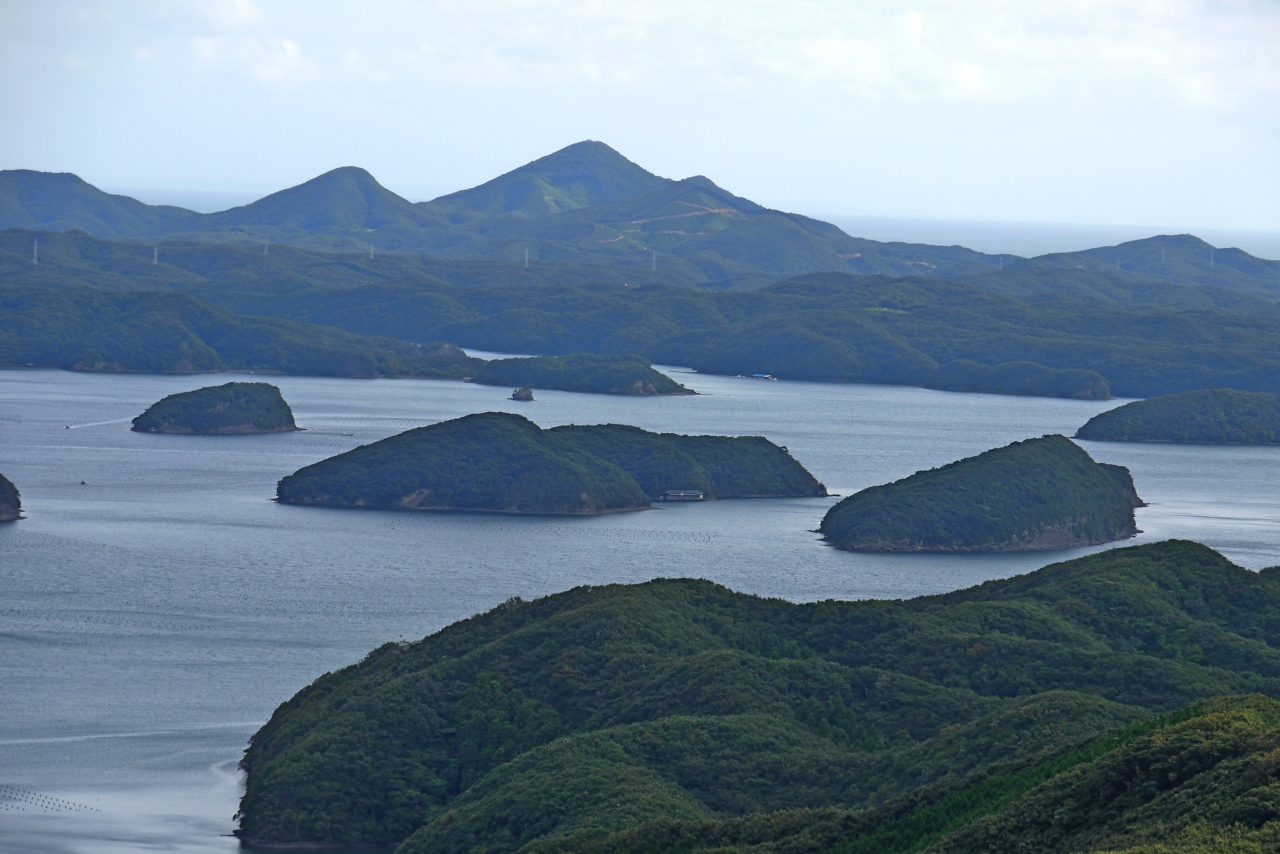 上見坂公園よりずっと素晴らしい.展望台の駐車場からも180度ではあるが同じ絶景を眺められるのでお年寄りも満足できる場所だ.展望台には急な坂を5分くらいのぼる.浅茅湾のArchipelagoのみでなく,遠く韓国も見ることができる!