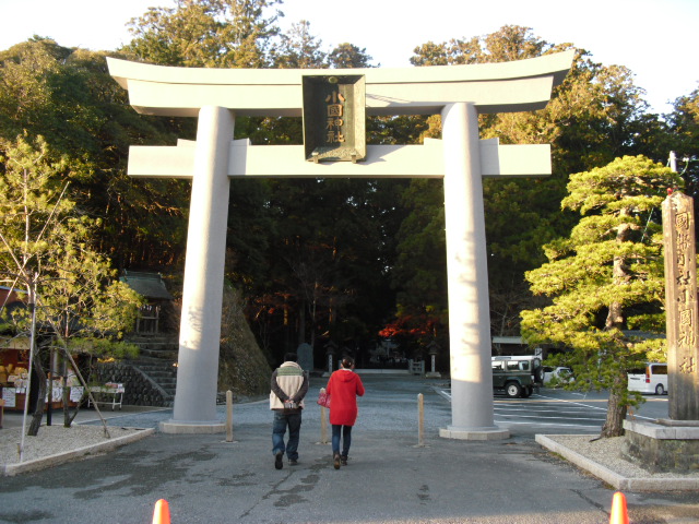 遠州の一宮として、地元の尊崇を集めています。大きな鳥居の向こうには、巨木が立ち並び、厳かな雰囲気です。正月に何度か初詣に行ったのですが、いつもものすごい渋滞になりました。今回、12月の日曜日の夕方にいったのですが、それでも結構参拝客がいました。