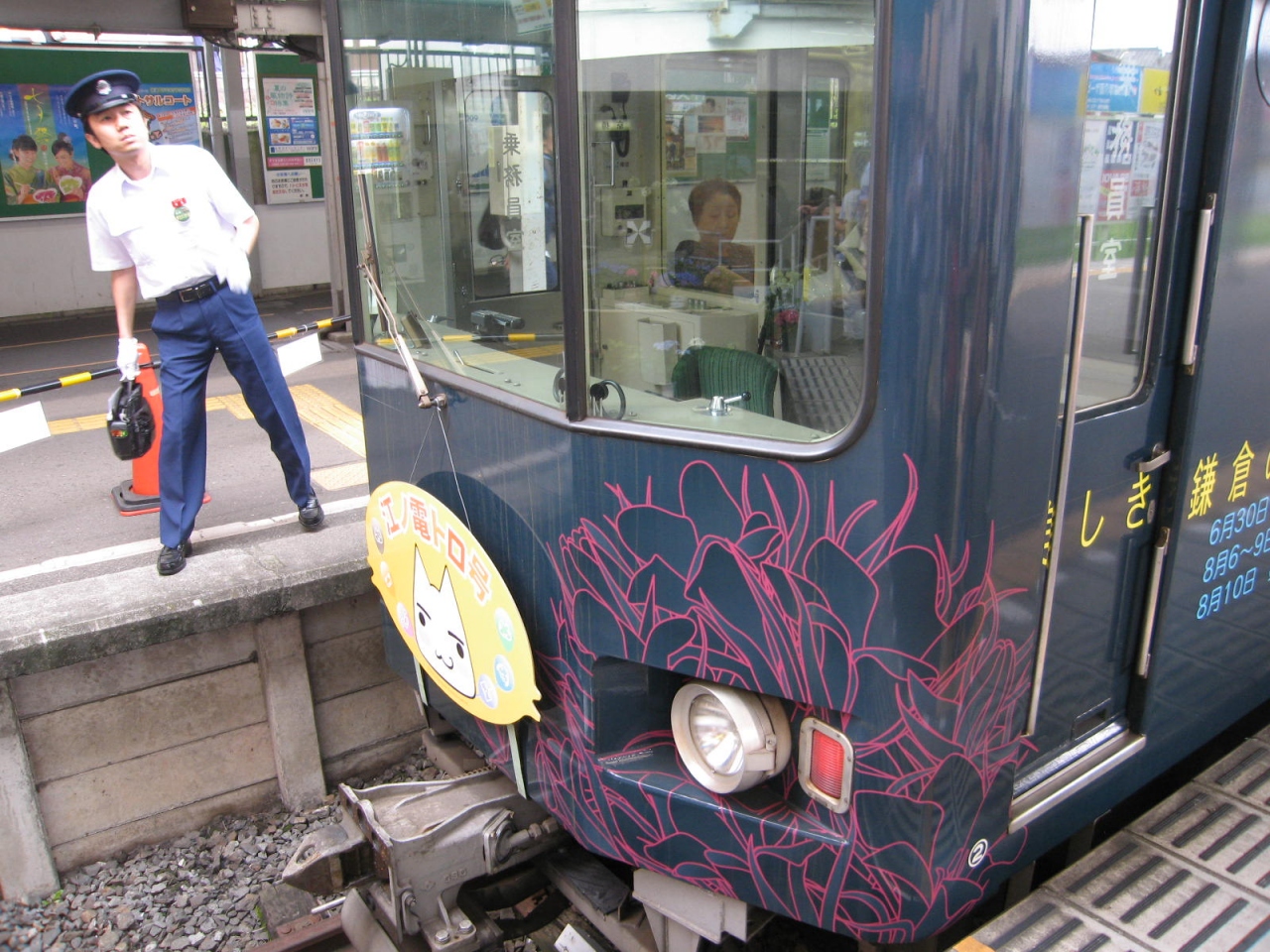 江ノ島駅は江ノ島電鉄の本社になっています。主要な運行上の指令はここで行われています。ホームは2面2線です。三角屋根の駅舎やホームの様子、それに安全確認の様子を見ていると安らぎます。云うまでもなく江の島観光の窓口です。