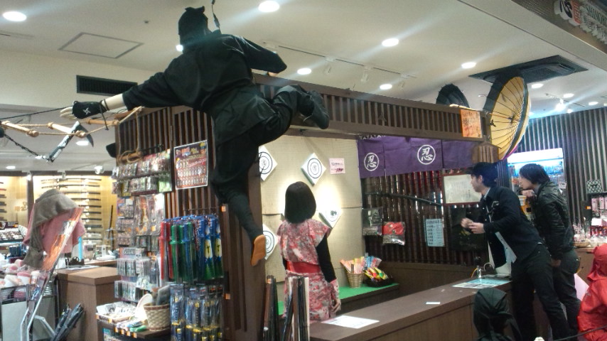 私が気になり、実際に行ったのは7階と屋上のみです。 7階はレストラン街と、日本人の考える、外国人が喜びそうな"ザ・ニッポン"の商品やお土産などを扱う店舗がいくつも入っています。 もちろん日本人でも楽しめます。 手裏剣を投げて遊ぶアトラクション(縁日の射的の手裏剣バージョン)があったり、もちろんニセモノですが、日本刀とか売ってたり…、そしてそれを真剣に見て欲しそうにしている外国人とかもいたり…、となかなか面白いコンセプトのお店です。 外国人観光客にもオススメですが、外国の友達などに日本のお土産を買う必要があるときなども便利に使えそうです。 売り場面積は小さいですが、100円ショップもあります。