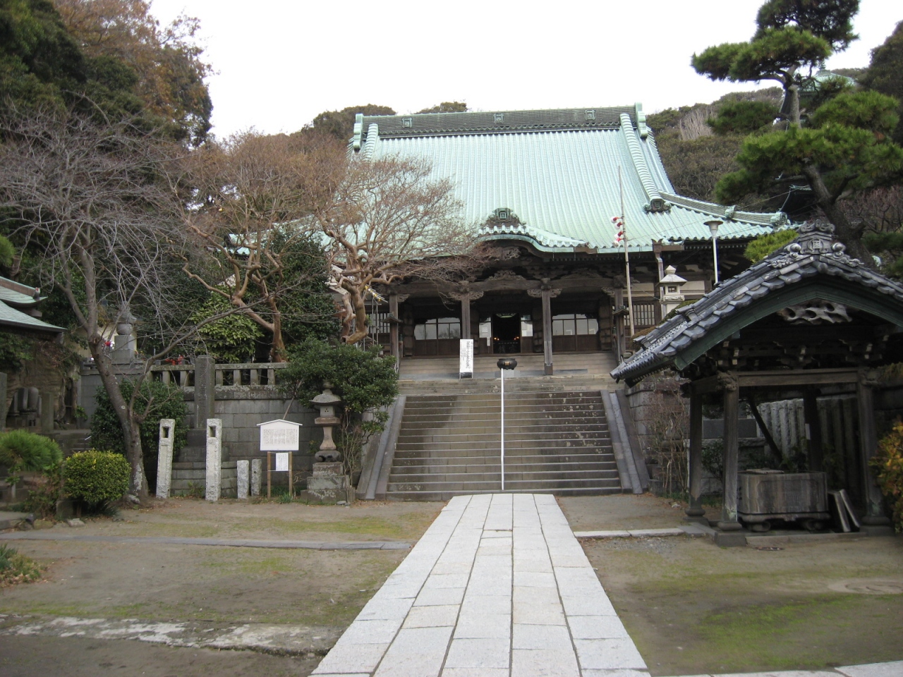 神奈川県藤沢市片瀬の龍口刑場跡に建つ日蓮宗の本山です。1337年建立、日蓮が斬首されようとした時に江ノ島方面から強い光が当たり、難を逃れたという、いわゆる「龍の口法難」の場所。緑と海に囲まれた静かな所にあります。門の前には江ノ電の線路やら、道路の交差点やら、面白い。