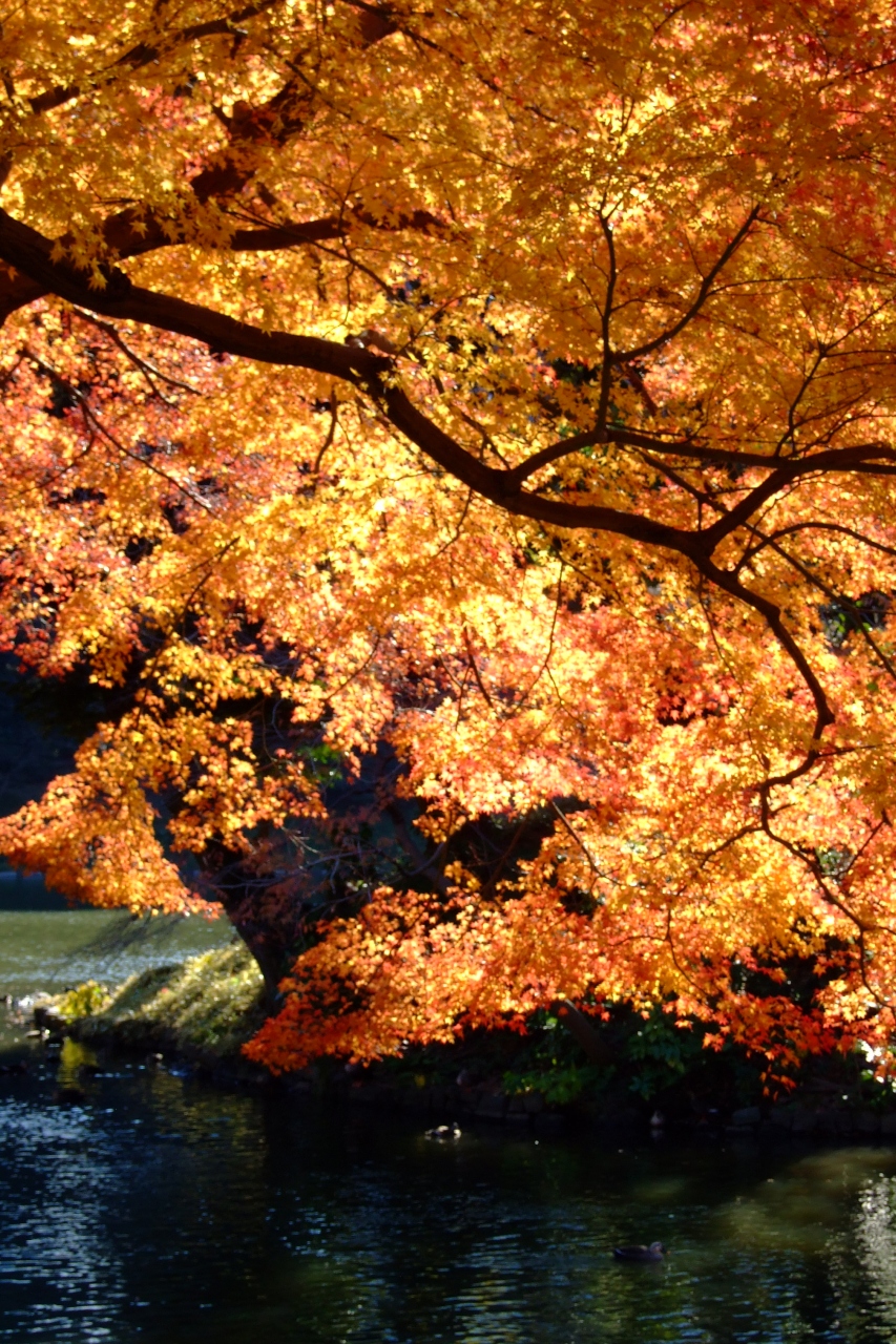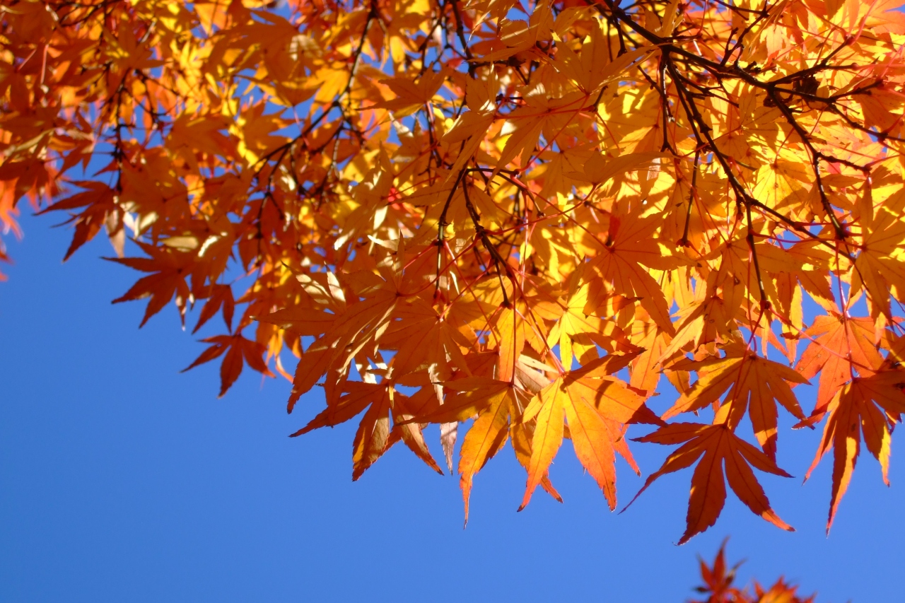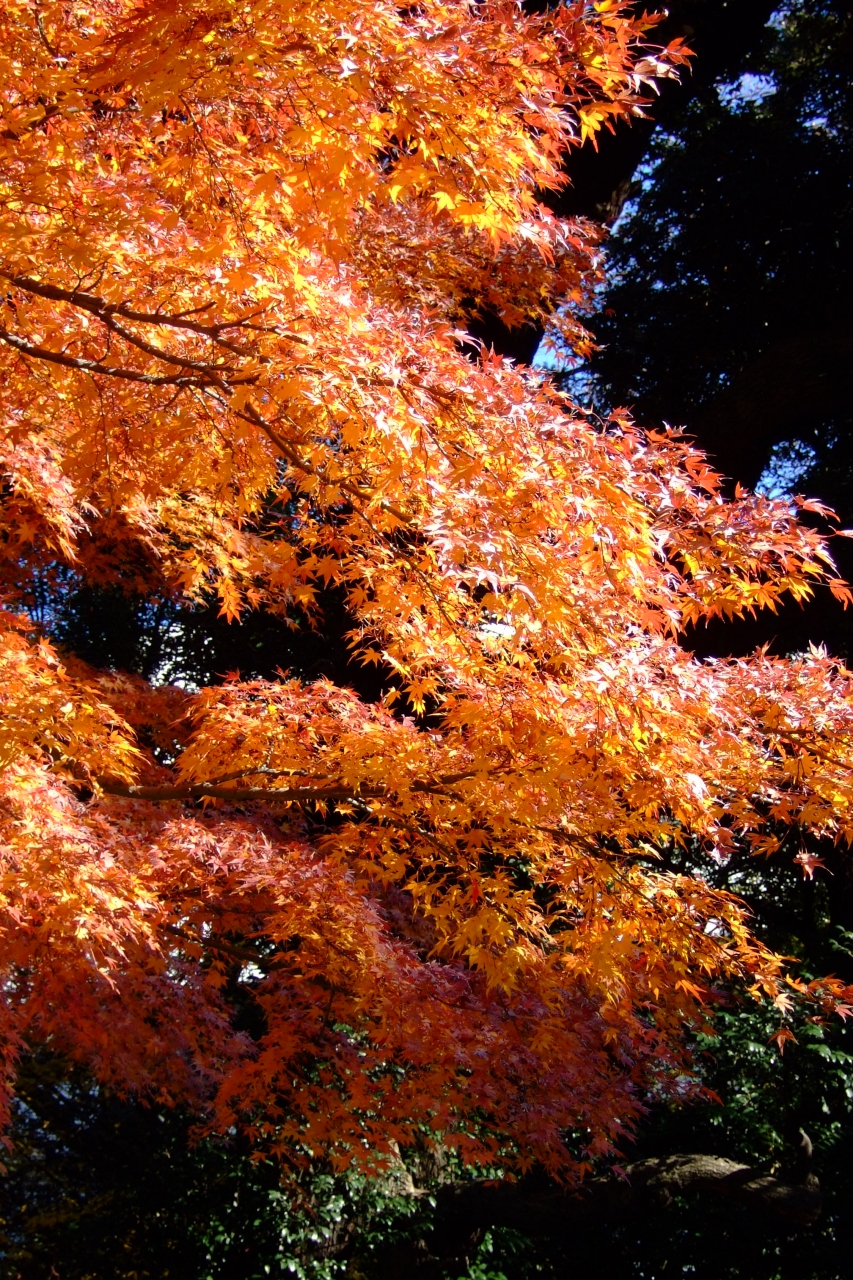 紅葉も終盤の時期、オレンジ色に色づいた葉がとてもきれいでした。