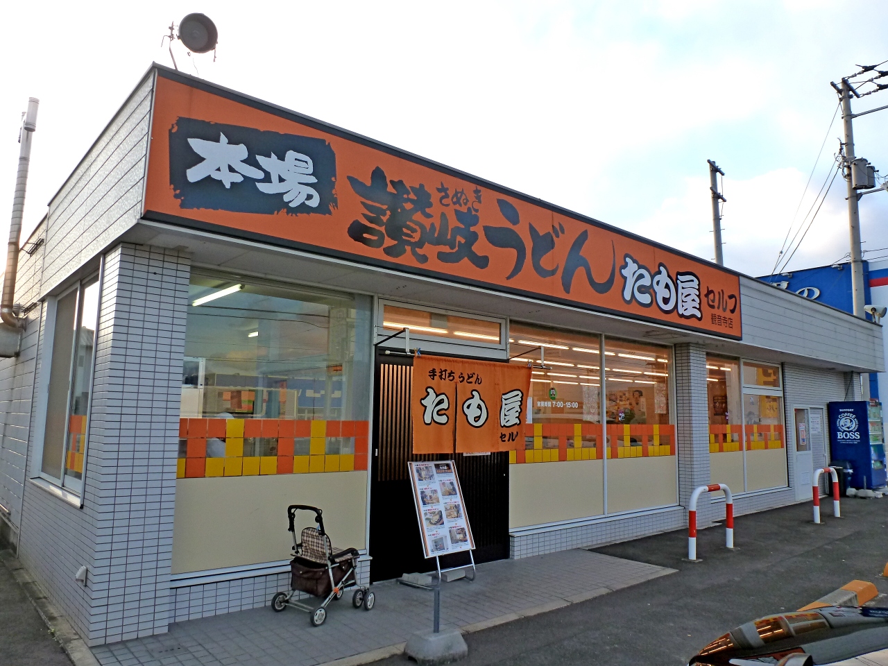 地元の人から「ここまできたんだから,讃岐うどん食べていけ!たも屋なら朝700から開いているということで,明日はホテルの朝食でなく讃岐うどんを食べに行くことにした. 「たも屋観音寺店」に.うどんを熱湯でほぐすのも,だしかけもセルフだったし,トッピングはかけ放題だし,度肝を抜かれたがおいしかった.短い時間の滞在でしっかり讃岐うどんが食べられた.