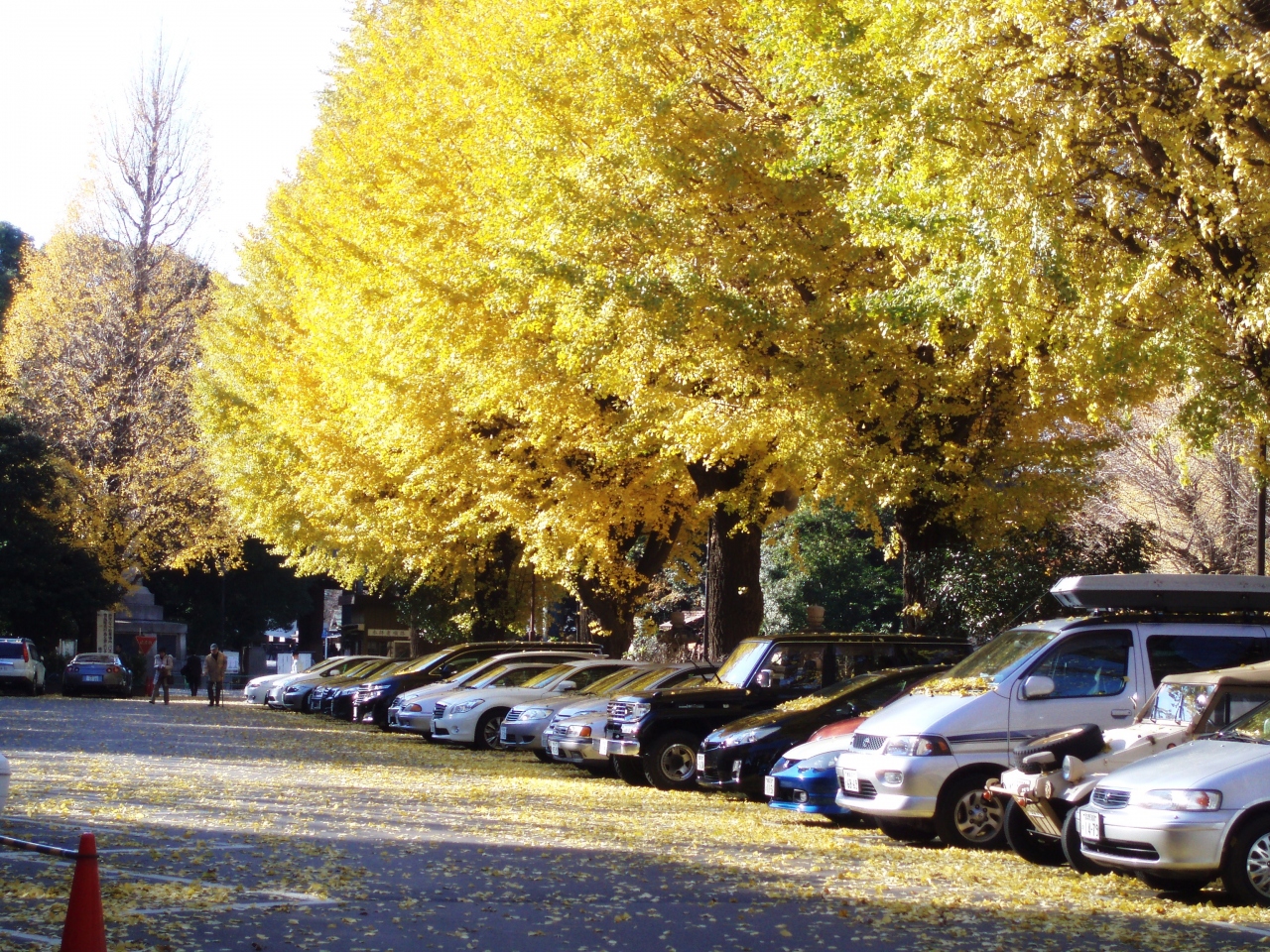 12月の秋、紅葉時期は入り口付近のイチョウ並木がとても綺麗です。紅葉の時期はイチョウ並木のライトアップもあり幻想的です。