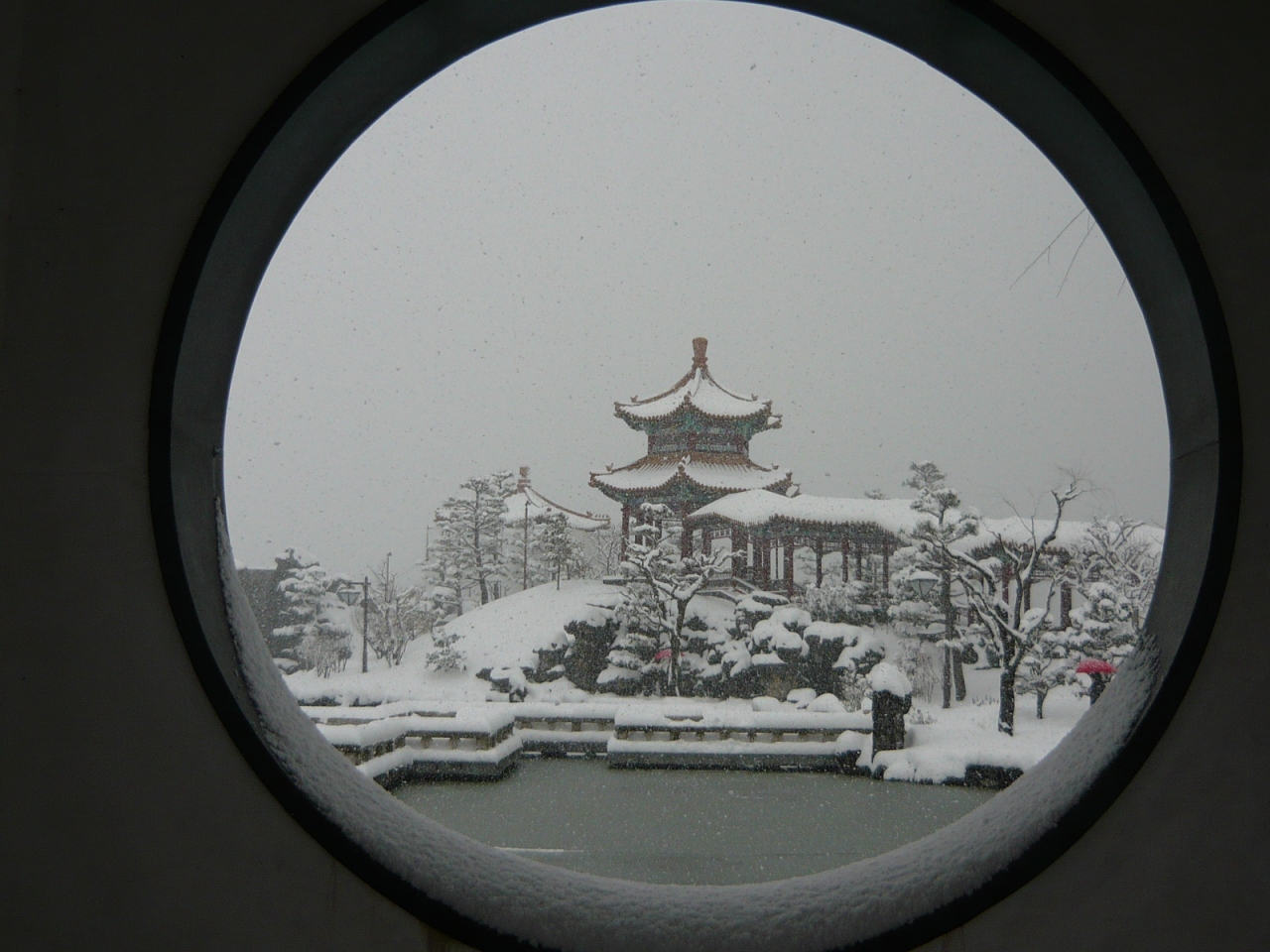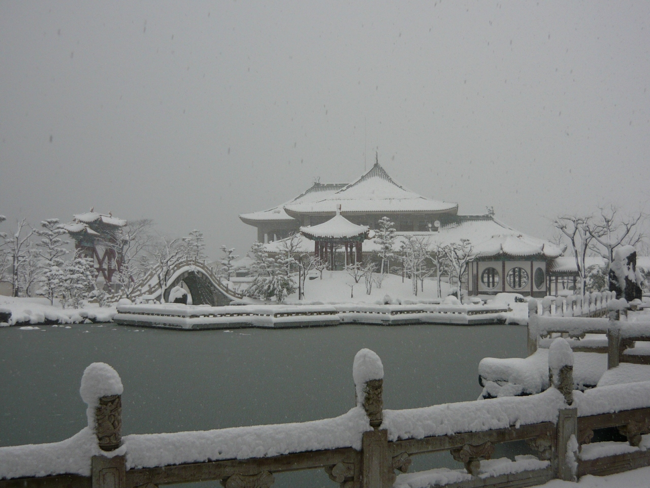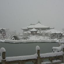 出雲・松江観光バスツアーで「中国庭園 燕趙園」を訪れました。場所は、東郷池の南側、倉吉駅から車で10分余りのところにあります。本格的な中国式庭園らしく、“天湖”と称する池の周囲に、様々な建物や石橋、滝などが配置され、訪問したときは雪が積もっていましたが、雰囲気十分の庭園でした。ここは、月9ドラマ「西遊記」のロケ場所にもなったそうです。また、中国雑技団の公演が毎日3回実施されているほか、中国書画の展示などもありました。庭園の外には食事処もありますので、近くに寄られたら散策されることをお奨めします。