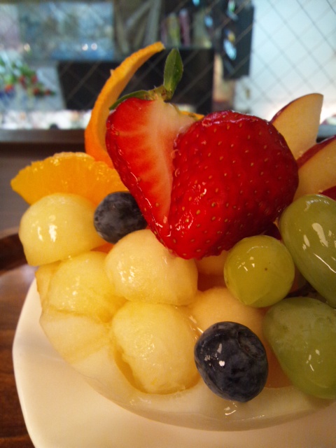 ケーキもありますが、メロンボールでガッツリフルーツを摂取がお気に入り♪