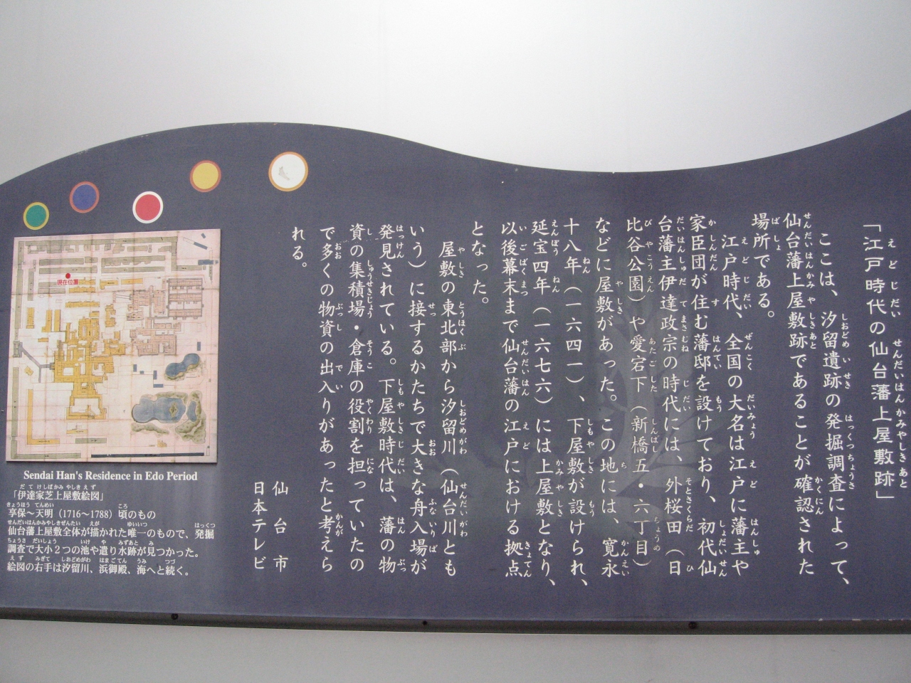 政宗公の頃は現在の日比谷公園付近にお屋敷があったそうですが、その後汐留に屋敷が設けられたそうです。