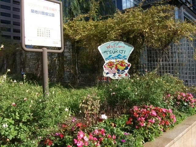 築地にはいくつか公園がありますが、良い方の部類に入ると思います。 祝橋公園のように何も無い(水道なし、トイレ仮設)公園が近くにありますが、こちらは花壇も喫煙所もあります。