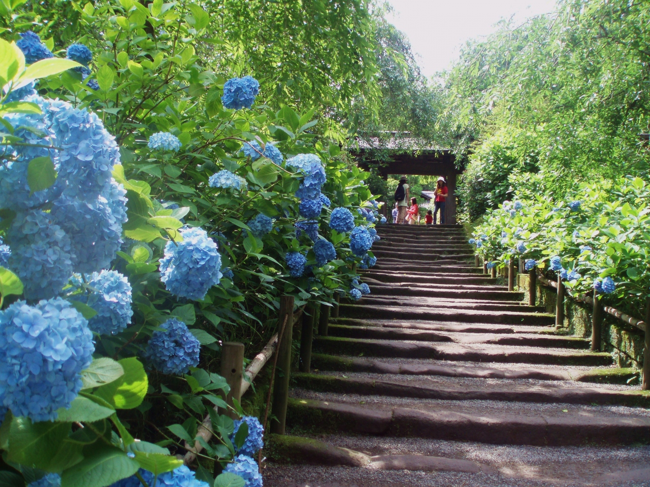 紫陽花の時期は明月院ブルーと呼ばれるほど 青色の紫陽花で