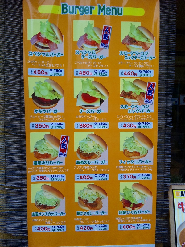こじんまりしたお店ですが、手作りなのがウケているようです。ハンバーガーメニューは12種類あります。サイドメニューとのセットもあります。また、大変気になるメニューの牛すじカレーライス(300円)を一度は食べてみたいと思います。テイクアウトも良し、イートインも可能です。