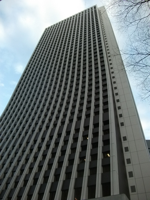 かつての安田火災海上の本社ビルです。 低層階部分がスカートのようになっているので、他のビルとすぐ見分けがつきます。