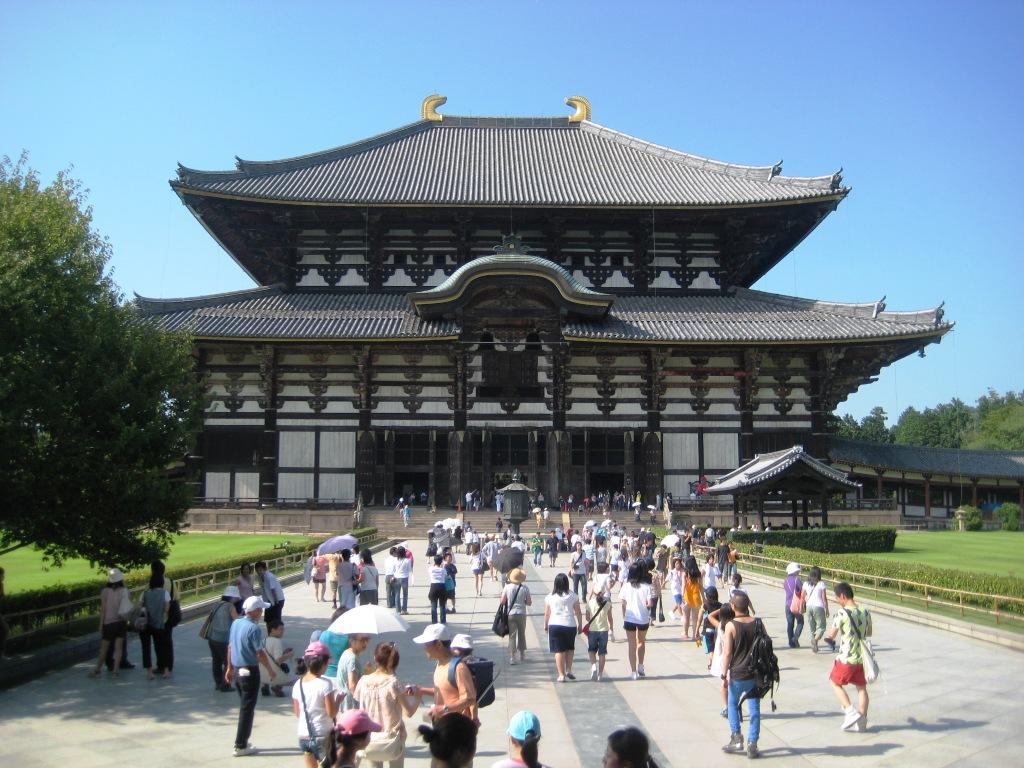 南大門をくぐり広い境内を進むと巨大な木造建築の大仏殿があり、そのなかに大仏様が鎮座しています。背後に金の飾りを纏った大仏様はとても威厳があります。