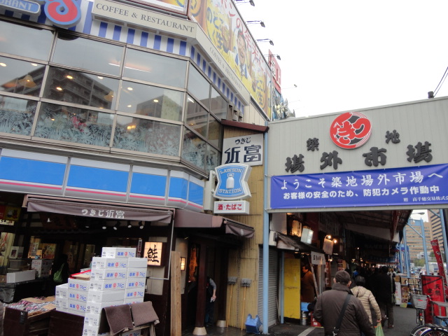 築地市場の外側、北東側に広がる、俗に言う「場外」と呼ばれるエリアです。