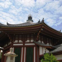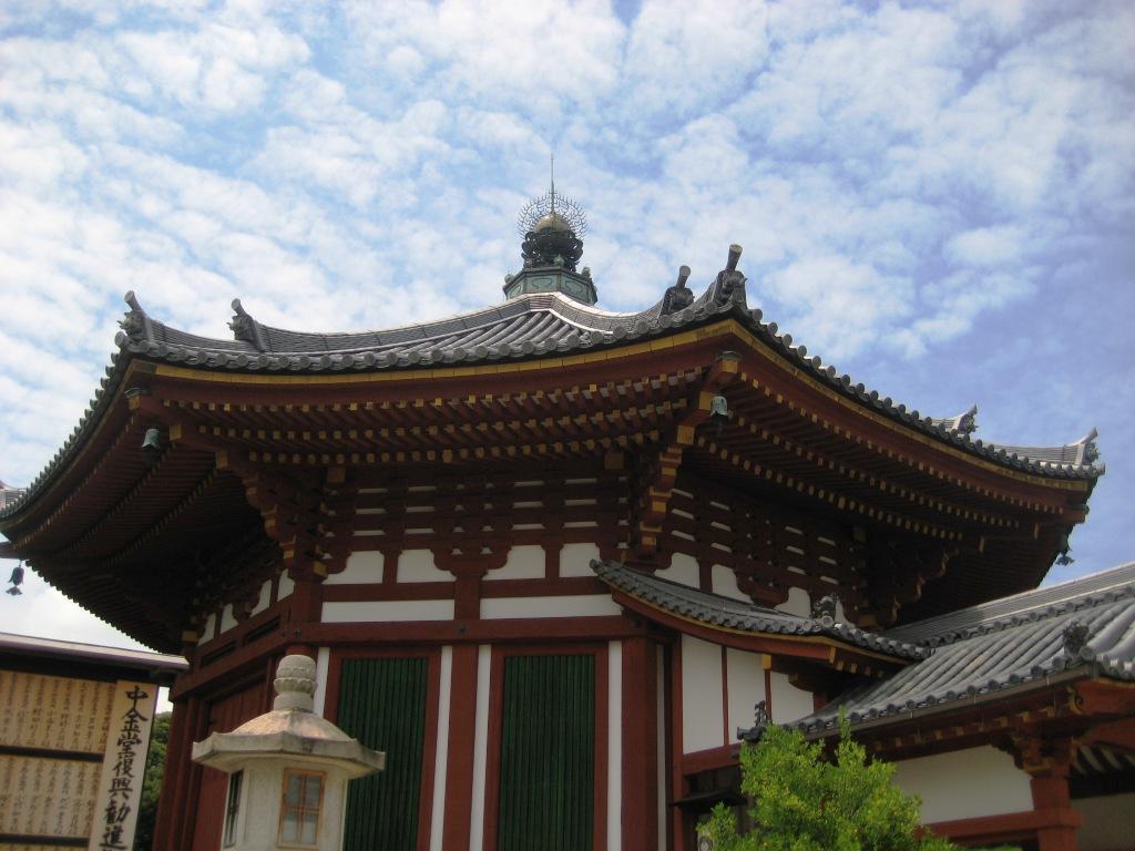 興福寺の一角にある、国内最大と言われる八角円堂です。ここからは、五重塔や国宝館、北円堂を望むことができ、興福寺の中でもすばらしい景色を見られる一角です。また、ここから石段を下れば、猿沢池、ならのまち商店街方面に抜けることもできます