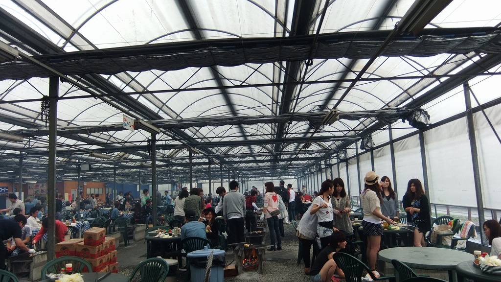 雨が振り込むから、巻き上げたビニールが降ろされて雨風を防いでる。でもそれが良くない。熱風の逃げ場がない。暑くてたまらない。