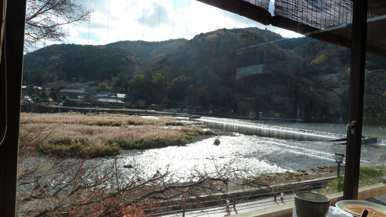 二階は全面ガラス張りになっていて、桂川や渡月橋が見渡せます。