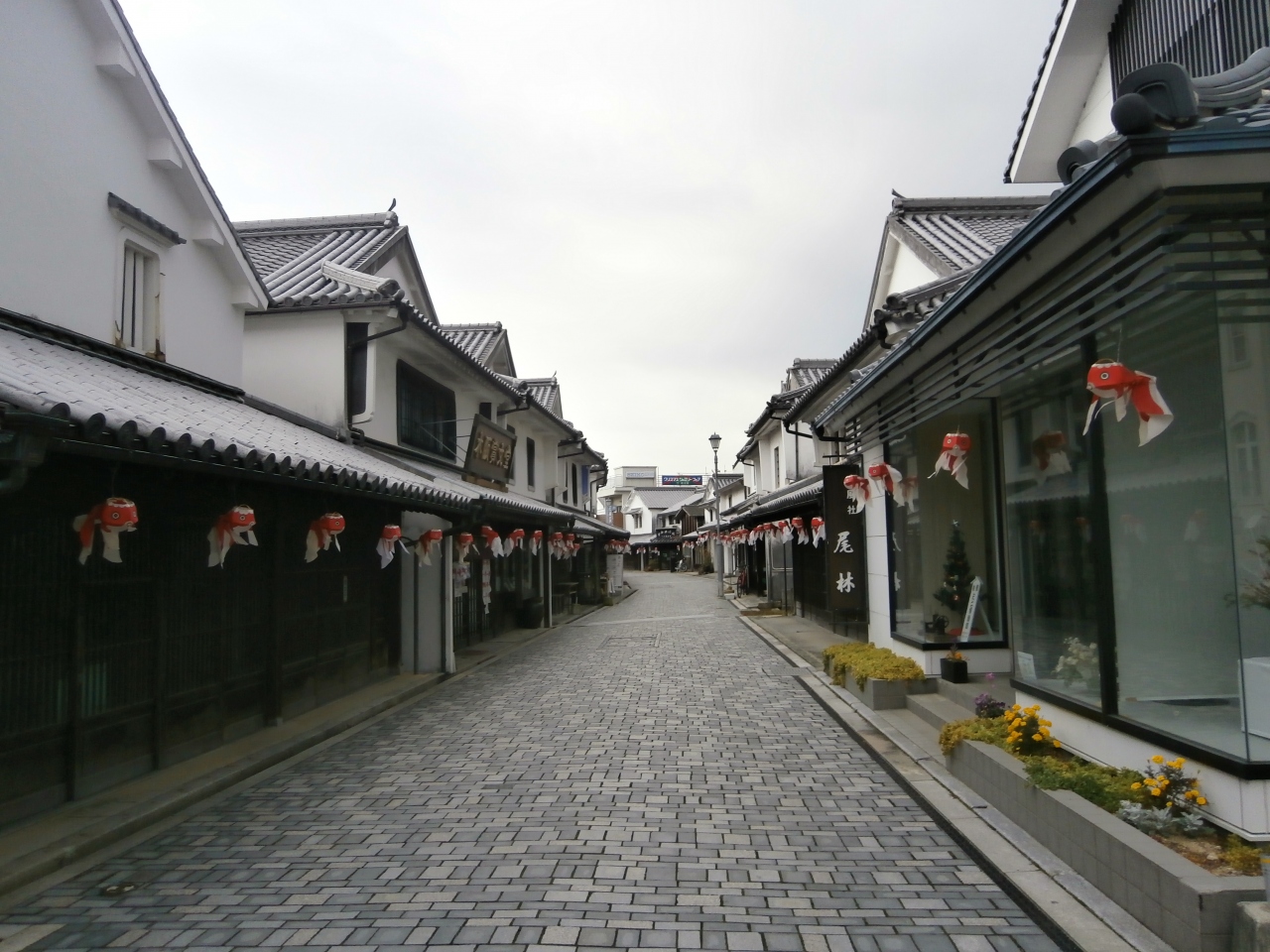 そこの角を左側に曲がると、そこから古い白壁の町並みが現れます。
