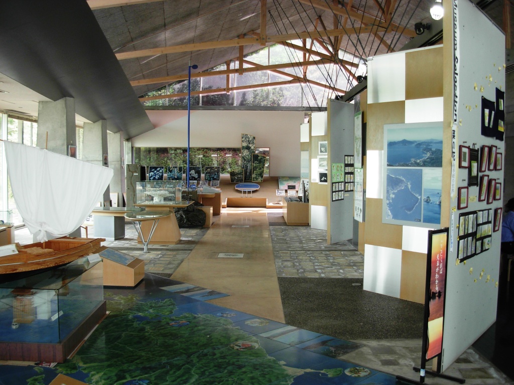 天草諸島の観光に役立ちそうなのが、天草ビジターセンターです。大矢野島と天草上島の間にある小さな永浦島にあります。展示はシオマネキやサンゴ礁など、天草に生息する自然の生きものが中心。天草諸島の成り立ちなども紹介されてました。全面ガラス張りの窓の外側はちょっとした展示スペースになっており、不知火海が一望できます。隣接する天草展望休憩所ではお茶や軽食をとることもできました。