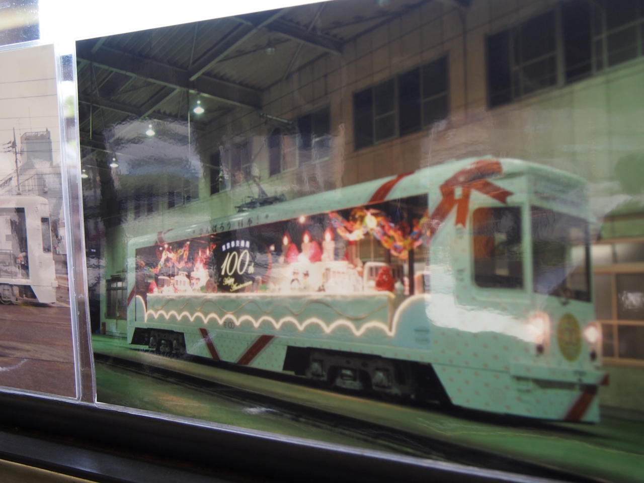 昔の都電の車両、記念電車の車両の写真が飾ってあります。
