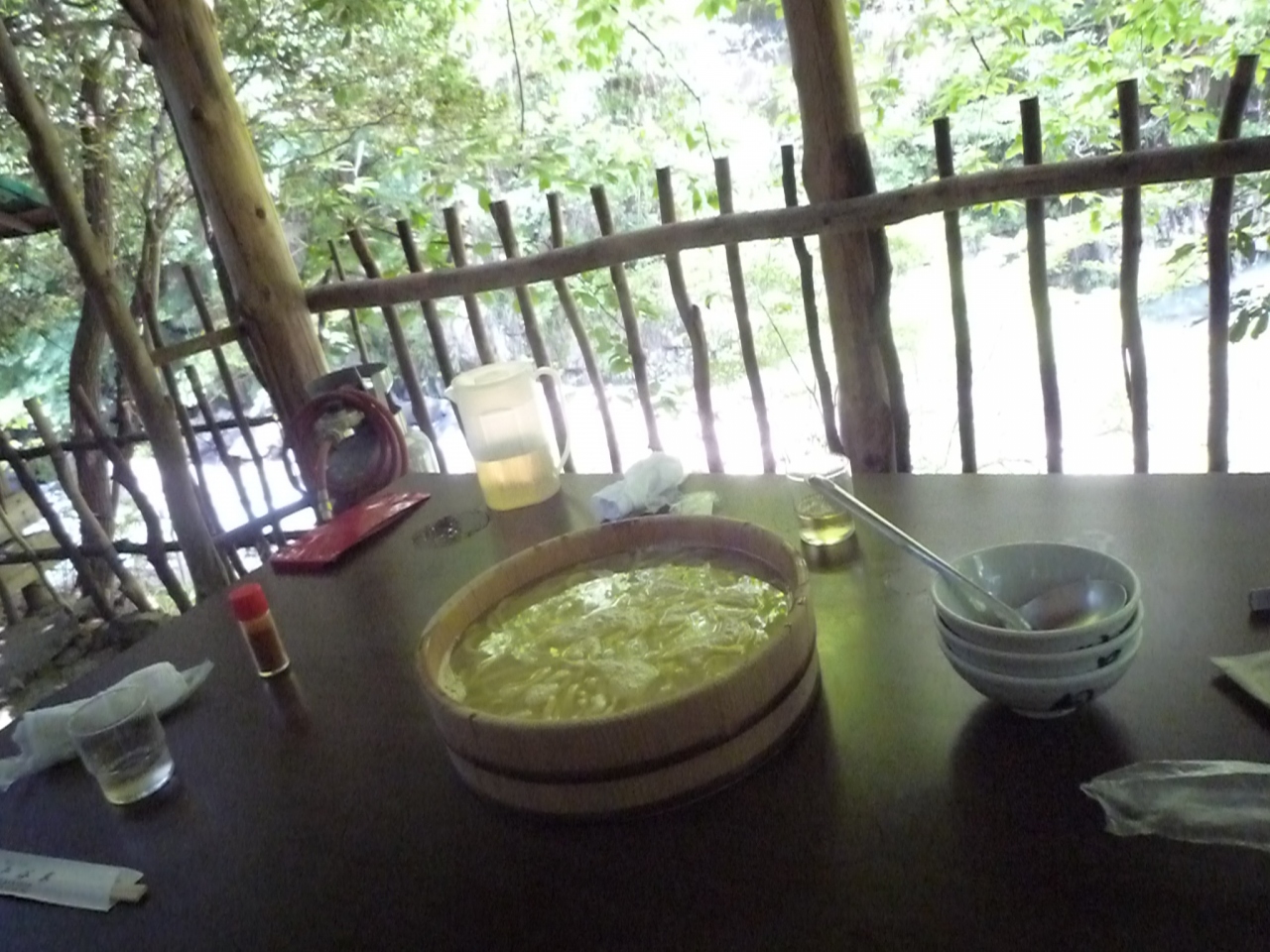 川のせせらぎを味わうため、川床にいきました。手打ちたらいうどんは550円とリーズナブルです。