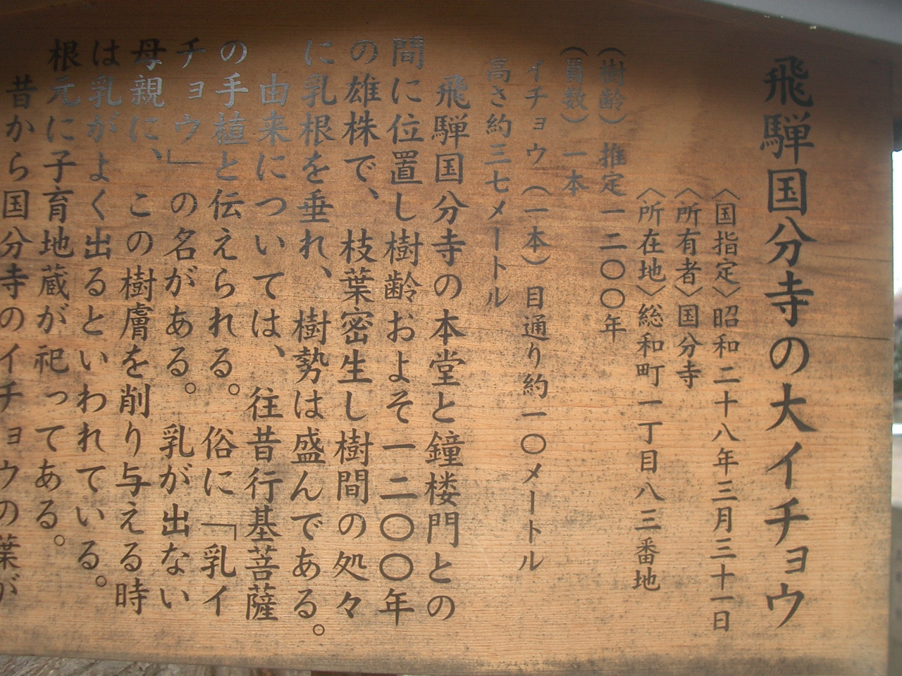 樹齢1200年といわれている大銀杏です。たかさ約28メートルとのこと。りっぱないちょうです。たかやまの古さの象徴ではないでしょうか。このような古木にお会いすると,こころがやすまります。高山はいいところです。