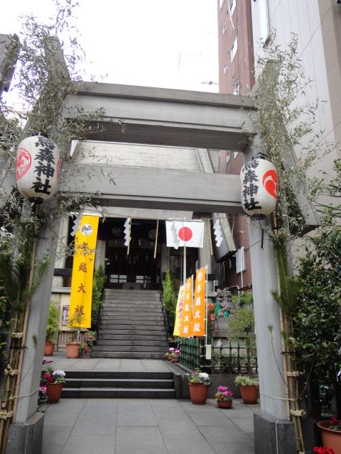烏森神社は新橋西口広場前のビルや商店の立ち並ぶ中にあります。参道は烏森通りに面しています。参道を進んで行くと、ユニークな形の鳥居があります。940年の平将門の乱の際に建てられたと言われています。江戸の大火の時にこの神社が類焼を免れたため、屋敷神として崇められているそうです。