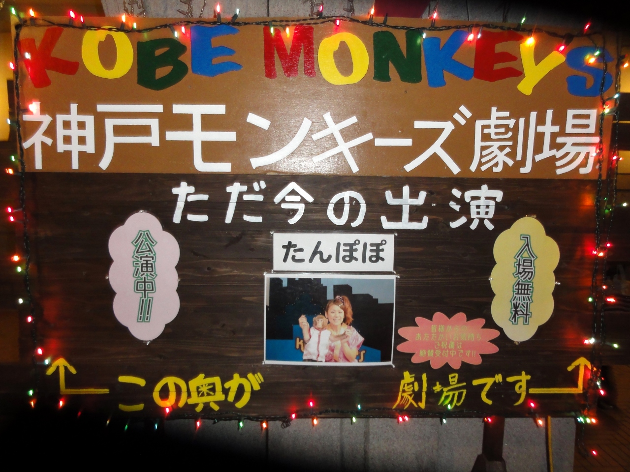 イルミナージュの時間帯に『神戸モンキーズ劇場』が開催されていることがあり、こちらは無料で入場できます。モンキーのパフォーマンスショーです。時間は20分ほどです。