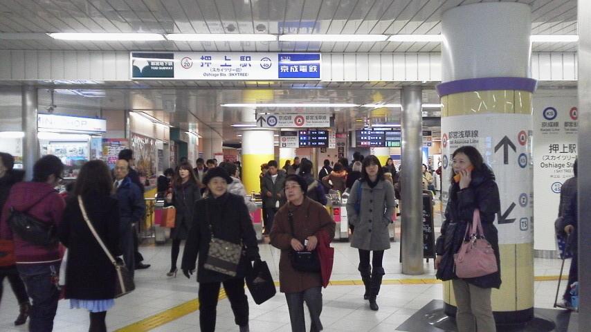 京成線&都営地下鉄浅草線の駅だったのが、東京スカイツリー&ソラマチができたことにより注目されたのが「押上駅」です。駅から直結で東京スカイツリー&ソラマチに行くことができ、この連絡通路は新しく綺麗で便利になっていますが、従来の地下鉄入口およびその通路というのは、昔からある単なる地下鉄の設備になっているので、このGAPが不思議な感じですね。