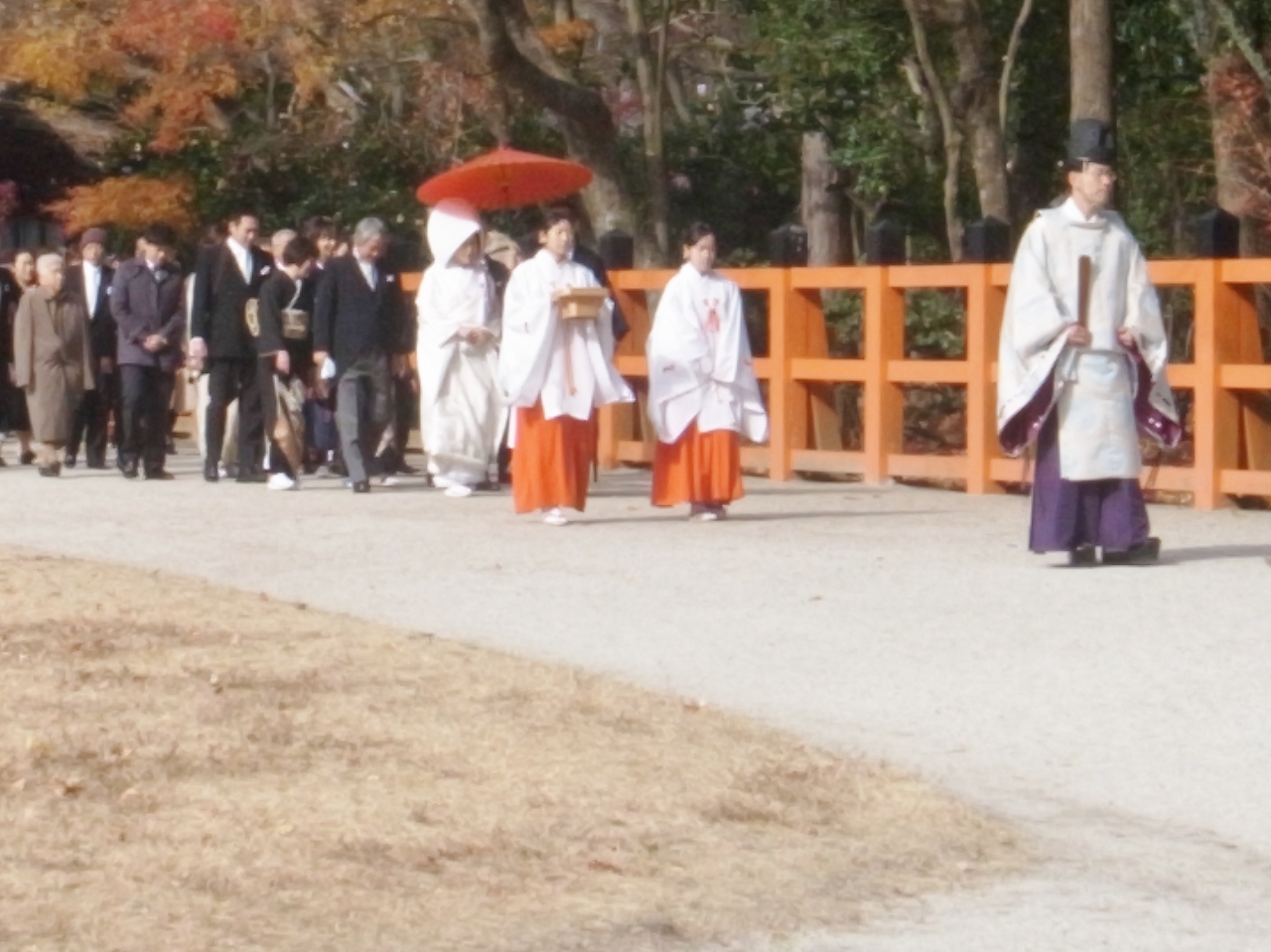 日柄がよかったのか、結婚式の行列を境内でよく見かけることが出来ました。境内は下鴨神社よりも静かで広々としています。本殿を特別拝観できたのもよかったです。神職のお話を伺い、昔神様が降臨なさったという神山(こうやま)の美しい姿を駐車場から眺めました。