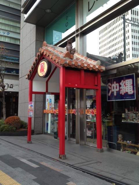 お店はビルの1階ですが、入口は沖縄独特の屋根が付いていてすぐ前の両側にはシーサーが置いてあるので、すぐに見つけることができると思います。