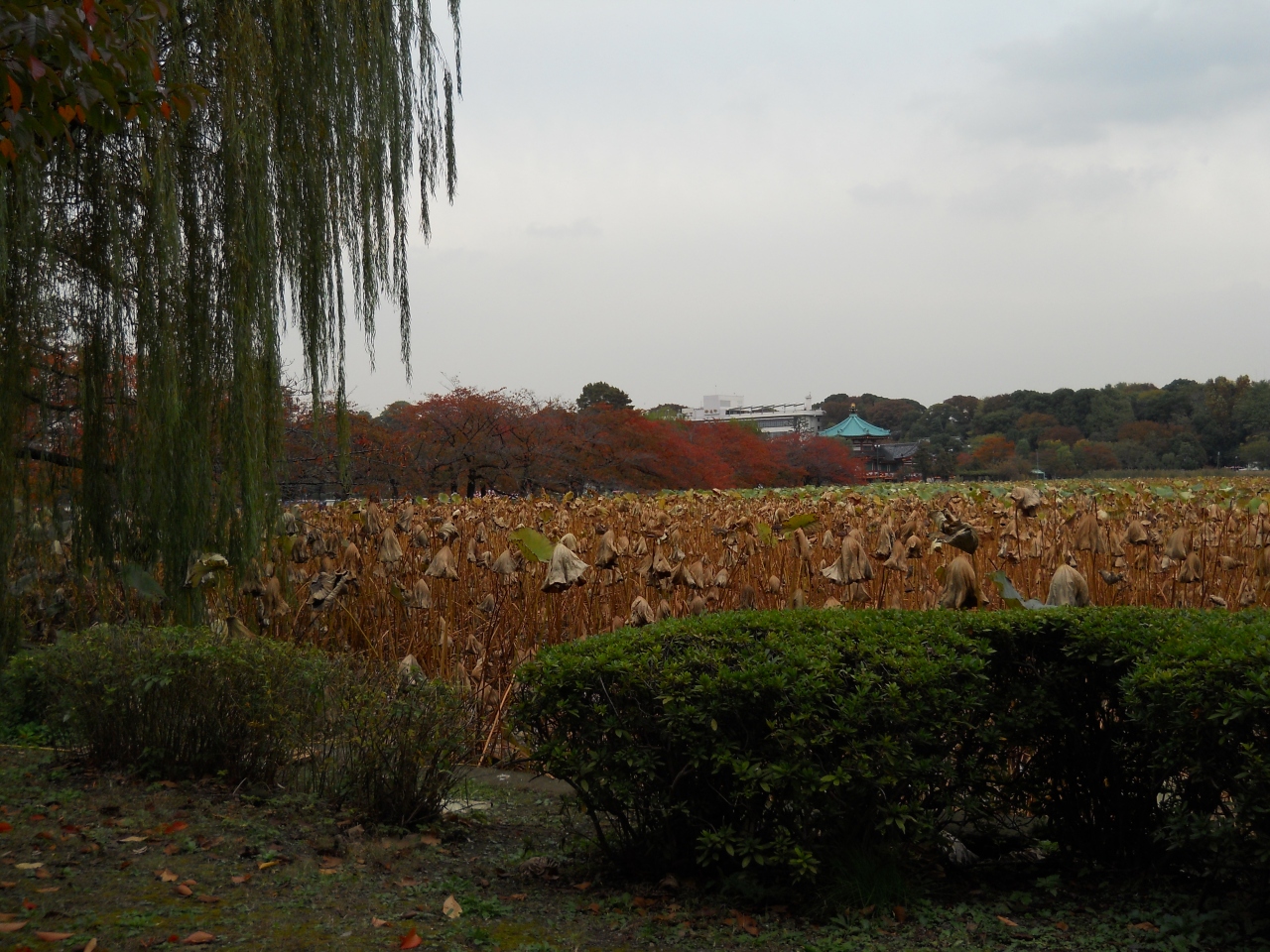 江戸時代に天海僧正が寛永寺建立の際、琵琶湖になぞらえて池中の島に弁財天を祀り、竹生島に模したことから名所になったという。遊歩道で蓮池・ボート池・水上動物園の三つに区分されており、カモや鵜などの水鳥がいつも群れている。桜の花や蓮の花など四季折々みどころがあり、秋はまた桜の紅葉が見事です。