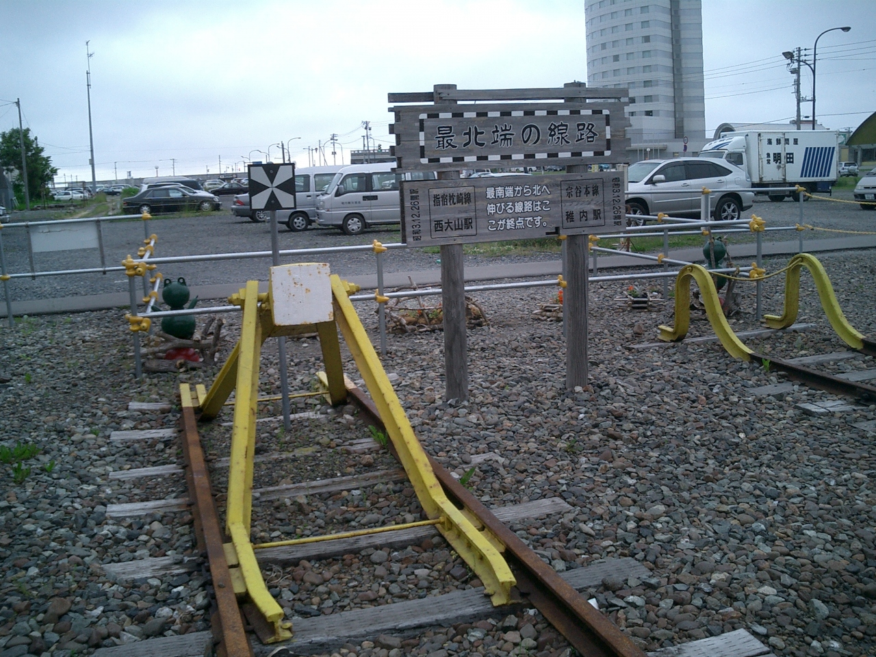 日本の最北端の駅のレールを見ました。こんな感じで線路は終わるんですね(笑)だからみんな道路と線路の境目がない感じで線路を渡ったり線路の上で写真を撮っていました。普通の線路ではありえないことですがココではOKなのでしょうか・・・。