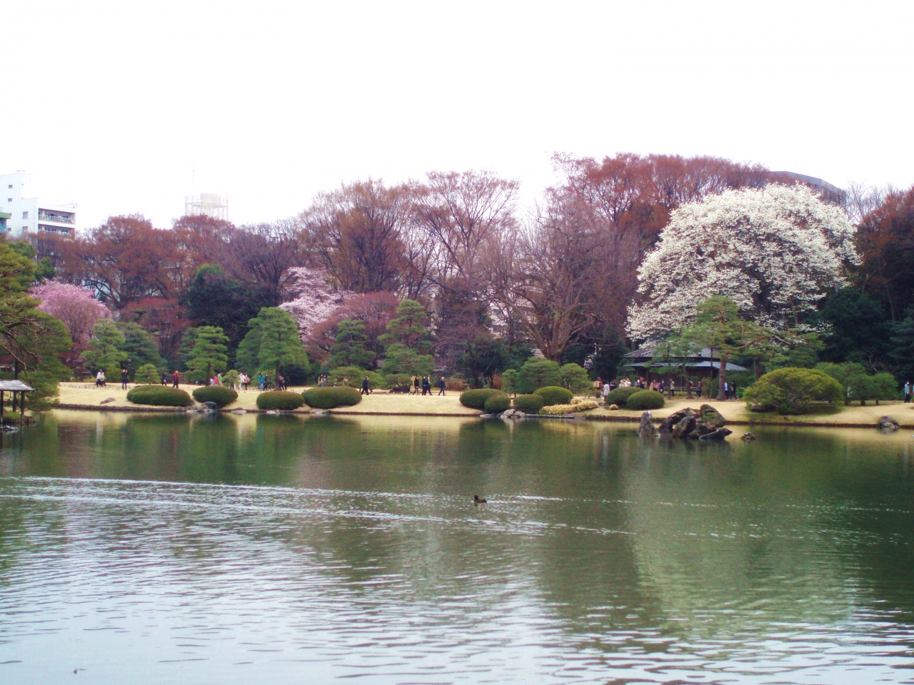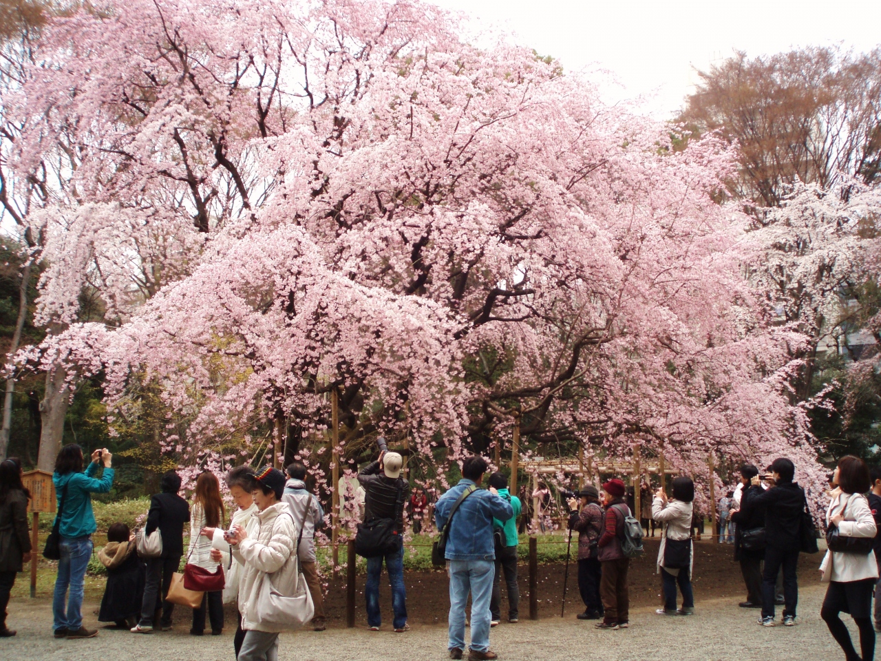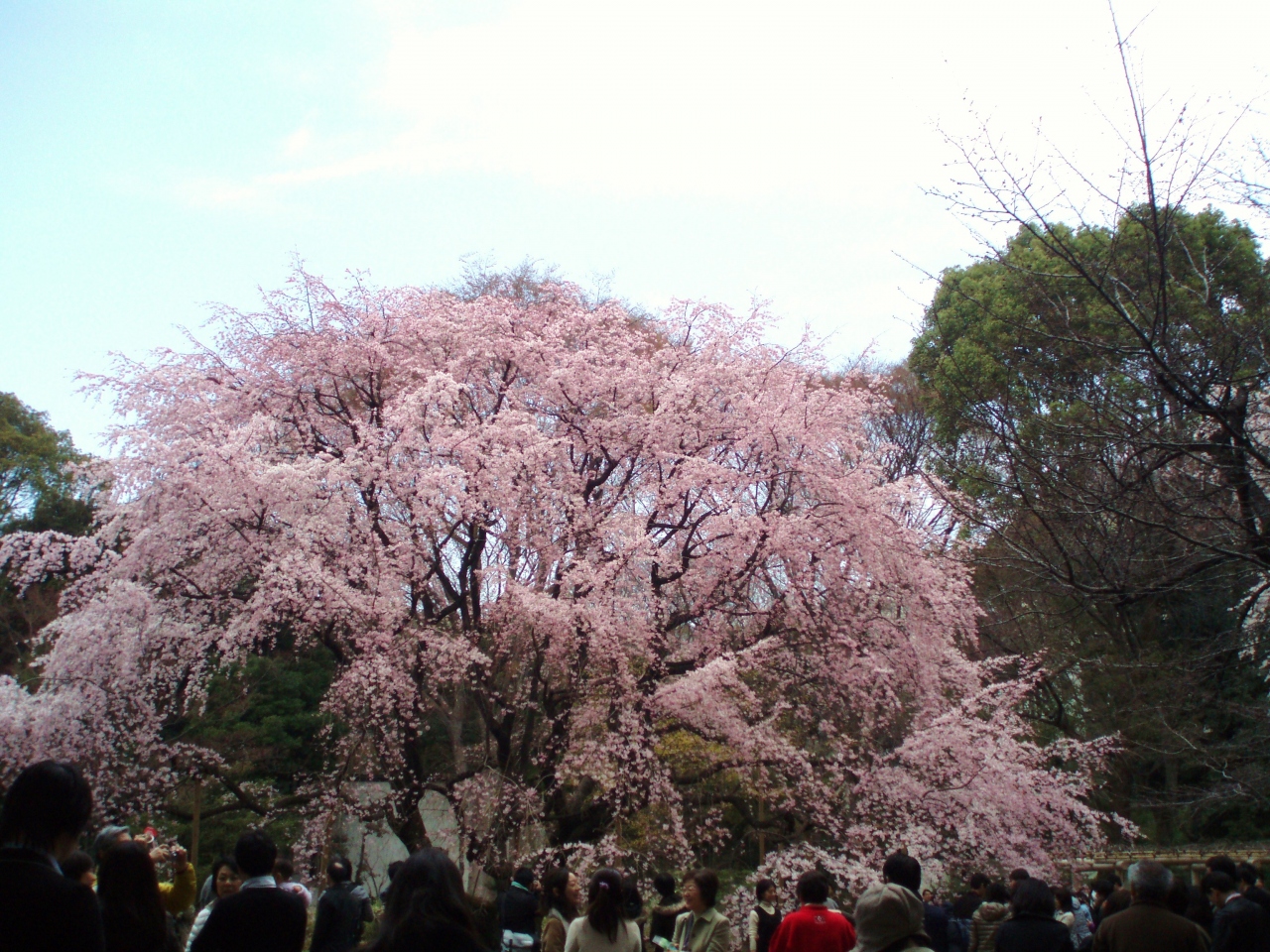 六義園のしだれ桜は少しピンクの色の濃い色をしています。