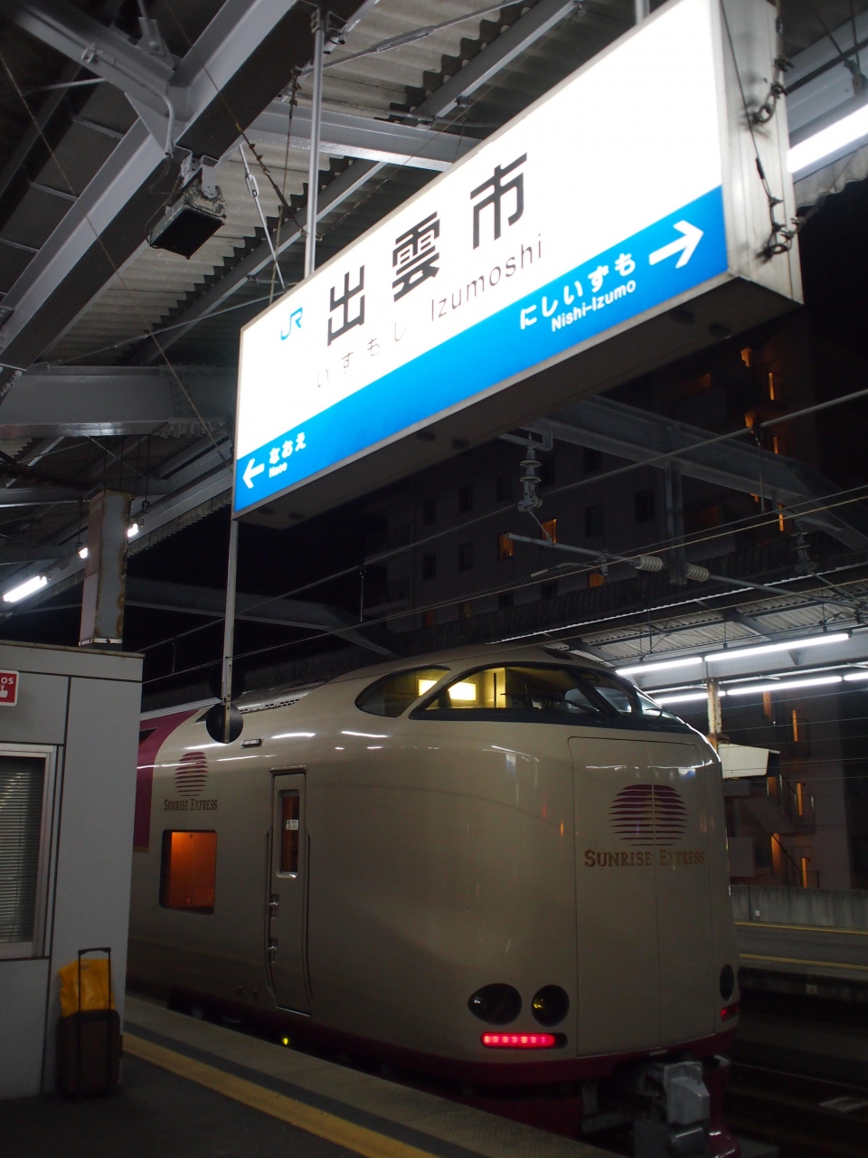 JR出雲市駅は、帰りにサンライズ特急出雲に乗った駅です。 一畑電車の電鉄出雲市駅と直結なので、移動にも便利。 ここから出雲大社へ向かうには、一畑電車か、バスを利用する形となります。