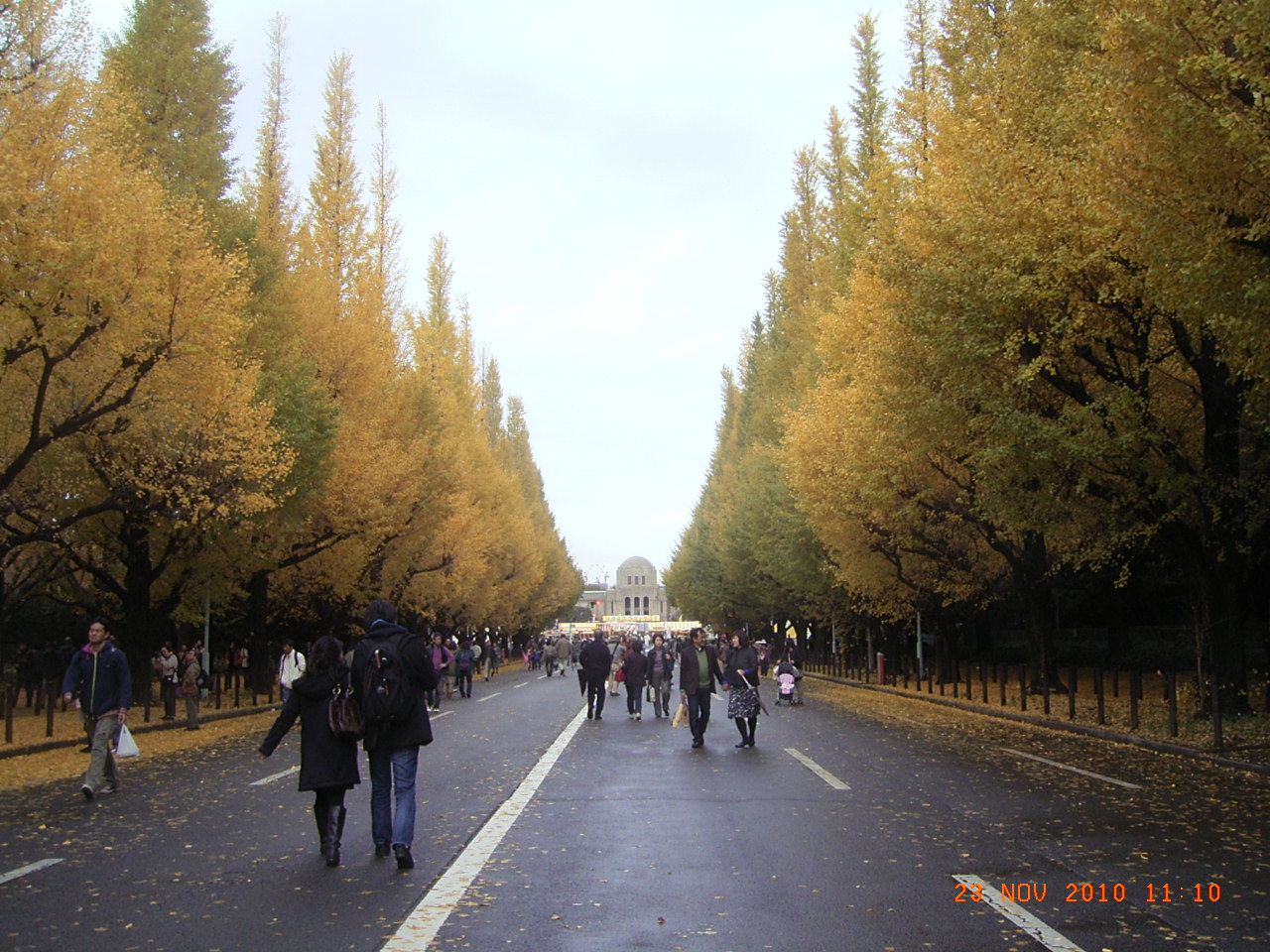 明治神宮外苑は千駄ヶ谷駅か信濃町駅です。地下鉄もあります。外苑のエリアには野球場やラクビー場などのスポーツ施設のほかに絵画館などもあります。特に銀杏並木は11月の紅葉は素晴らしいです。その並木も計画的に遠近法で植えられています。きれいな高さを感じます。