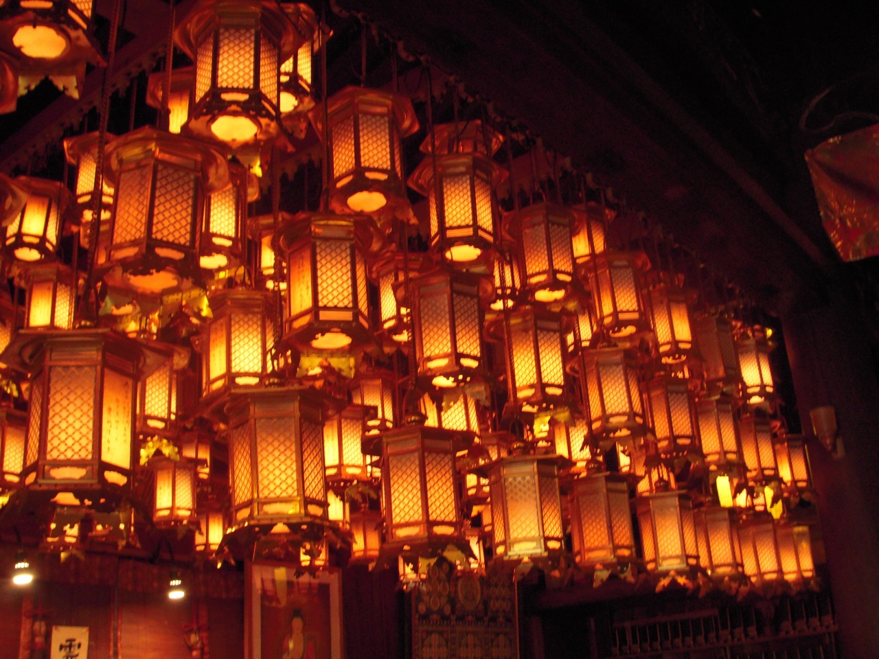 山門を抜けると、正面に本堂がありますが、堂内の灯籠みたいなものが無数にありとても幻想的で印象に残りました。