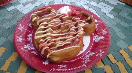 食べ歩きにもいけるプチワッフルもあります。(抹茶あずき&黒みつソースです。)