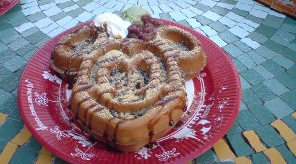 ワールドバザールの中にあるミッキーのワッフルが食べれるお店ですが、カウンターでワッフルの種類(メイプルソース、抹茶あずき&黒みつソースなど)があり400~500円ぐらいで食べれます。