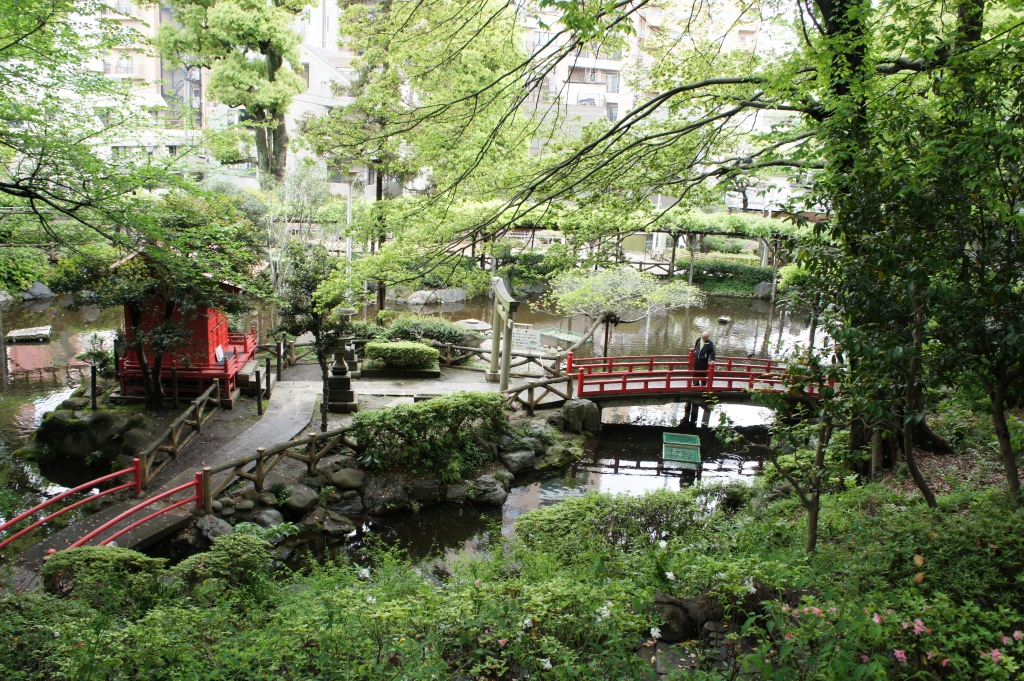 東京都内はあれだけ住宅が密集しているのに、歩くと思わぬところに鬱蒼と緑が生い茂る公園に遭遇してびっくりすることがあります。千駄木界隈を歩いていて、みつけたのが須藤公園でした。そんなに大きくはありませんが、滝があり、真ん中の池には弁財天のある島、さらに朱塗りの欄干の橋など、本格的な日本庭園になってました。元は加賀藩の支藩の大聖寺藩の屋敷跡で、明治に入って長州出身の政治家品川弥二郎の邸宅となり、その後実業家須藤吉左衛門が買い取った土地でした。1933年、須藤家が寄付、戦後公園として整備されました。この公園を歩きながらつくづく思ったのですが、東京って、ホントにお武家さまの町だったんですねえ。