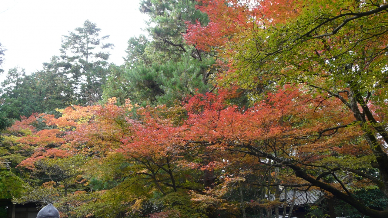11/27に京都の紅葉めぐりをし、法然院へも行きました。2011年の京都の紅葉は、例年年より1週間〜10日遅く、11/27では、まだすこし紅くなりきっておらず、青葉も残っている木があります。