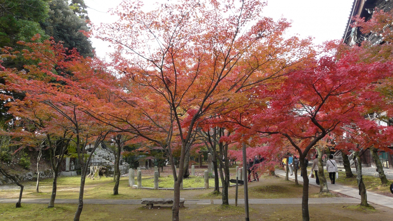 哲学の道近辺にある寺院から離れていることもあり、すこし行きにくいですが、紅葉という点では行く価値が大きいです。境内の無料区域に、たくさんのもみじがあります。境内も広いです。
