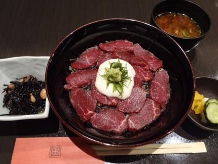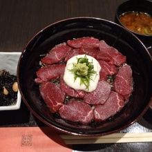 醤油で味付けられた馬肉をとろろとしそとわさびを絡めて食します。そこそこの量があるのですが、美味しく一気にいただきました。