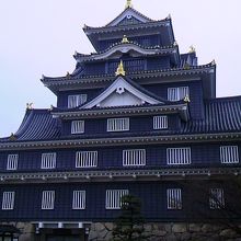 なるほど別名、烏城といわれるだけあって、真っ黒のお城でした。ライトアップはあまり意味がないかもしれません(実際夜は行ったことはないのでライトアップされているかどうかは知りませんが)ふもとには宇喜多秀家時代の石垣もあり無料で見学できます(かなりしたにあるので新しい城はだいぶ土を盛ったのだな。と感じました。