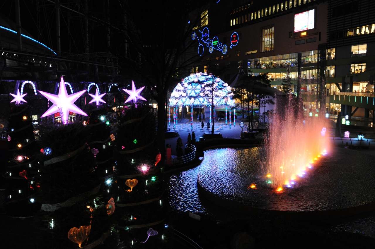 東京ドームシティの施設群の1つで、スパや幾つかのアトラクション、飲食店街がある複合施設です。オススメはイルミネーションで、クリスマスツリーや噴水のライトアップ「ウォーター・シンフォニー」、大観覧車ビッグ・オーの電飾など夜はとってもきれいです。東京ドームシティ全体では「LOVEイルミネーション」として展開しています。LOVEがテーマということもあり開催期間はバレンタインを絡めて2013/2/17までと長めです。