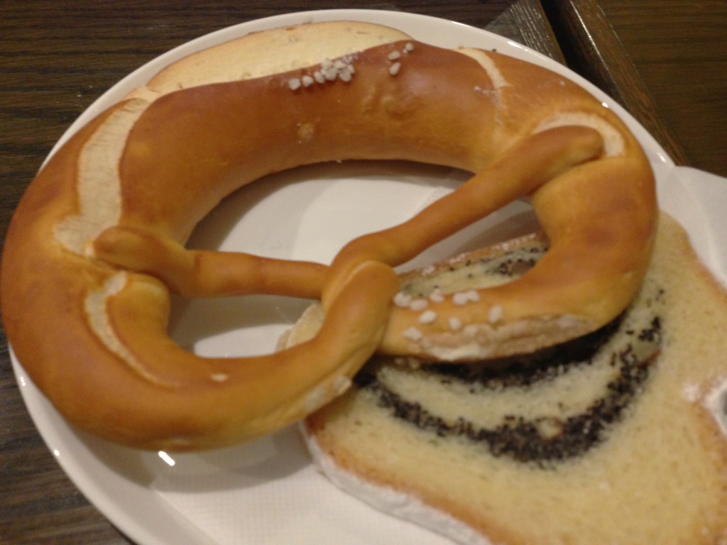 地元でいま人気です。みなさん最初は「なんだこのボソボソは」ですが、そのうち普通のパンが食べられなくなります。で、そのパン屋の2階にカフェがあるんですよ。サンロードに面してますが、静かな落ち着いたスペースです。